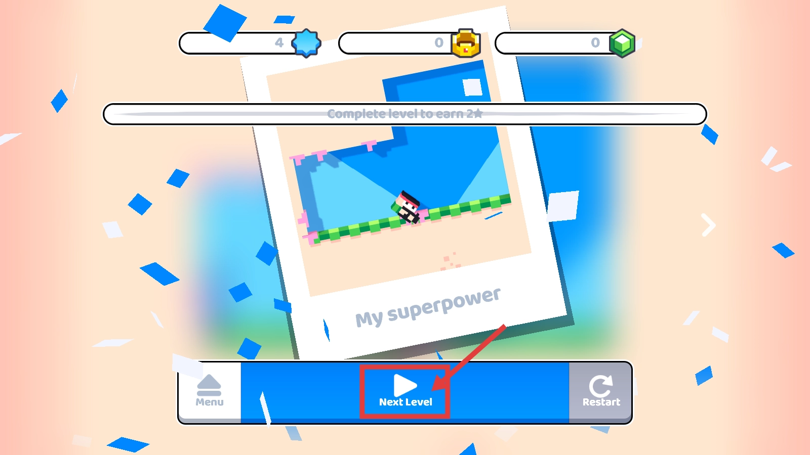 4、完成当前关卡后,点击【Next-Level】按钮进入下一关,继续挑战能积累更多资源与经验。