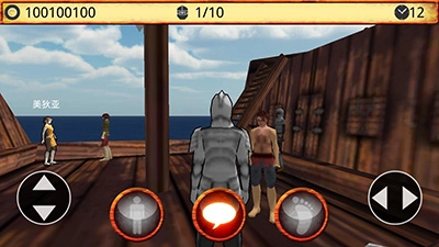 游戏开始后,角色会出现在一艘船上,正与一个人交谈,此时点击右下角的三角箭头就行。接下来去和对面头上带有名字的人物对话,完成这段对话后就能进入大陆了。
