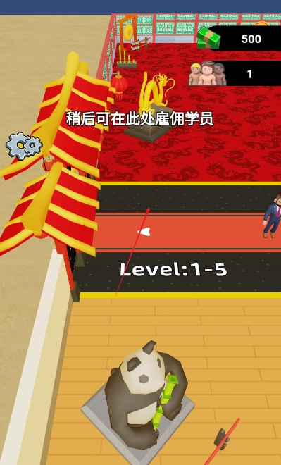 1、在道馆里,玩家得布置各类训练器材供学员使用,以此帮助他们增强武术实力、提高等级之类的。