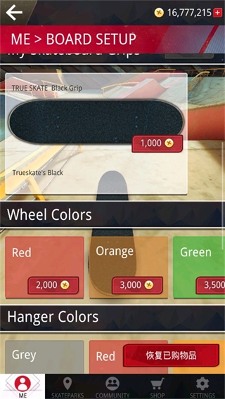 2、在列表当中根据自己的喜好来选择滑板搭配。