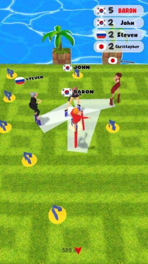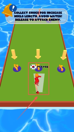 2、随后,左右滑动屏幕来收集相同颜色的高跟鞋,以此不断增加鞋跟的长度,与此同时要避开地面上的水洼。