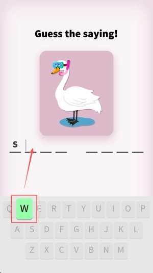 3、在输入区敲入正确谚语首字母“W”提交答案。