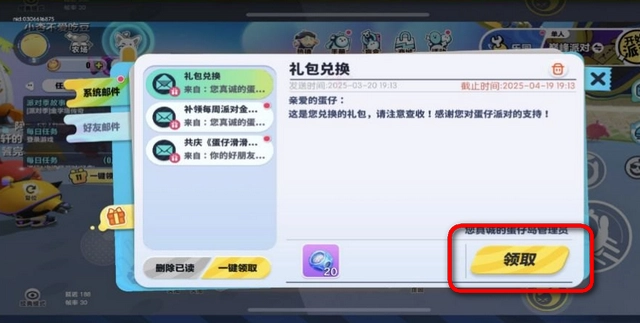 5、启动游戏客户端,找到礼包兑换的入口,然后点击“领取”按钮。