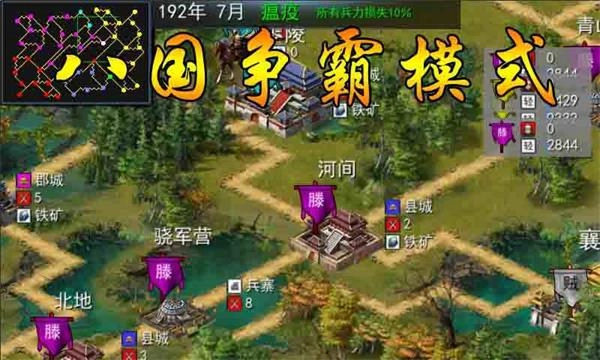 2、三国地图经过精心设计,玩家可以自由选择出生地以及规划征战的路线方向。