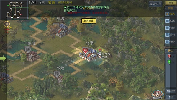 2、进入战役后,点击己方城池即可打开操作菜单。