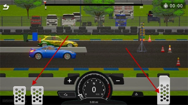 3、关卡内通过屏幕下方左右两侧的按钮控制车辆。