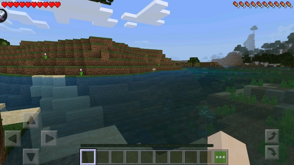 2、加载完成后,可借助左下角的虚拟按键操控角色移动,在场景里探索地形、收集各类方块资源。