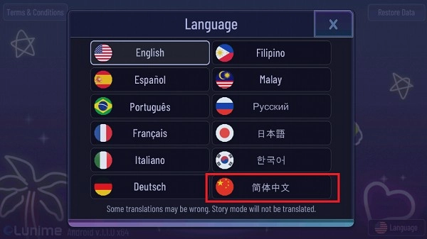 2、在弹出的方框里,选择右下角“简体中文”即可