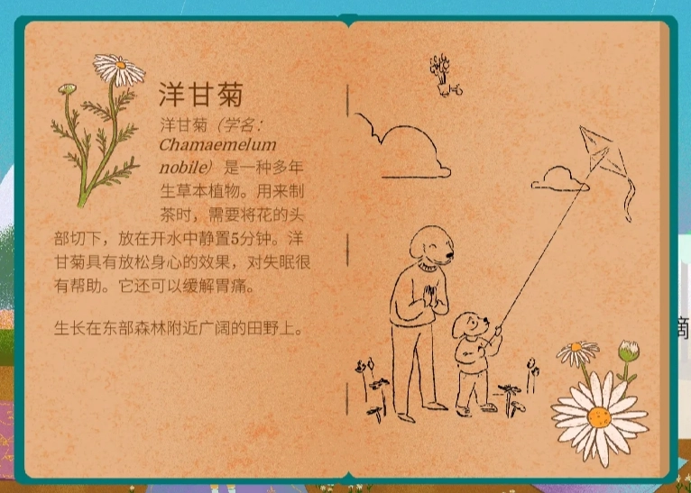 ⑤洋甘菊:【田地】可获取洋甘菊,相关线索在茶叶百科中有提及。