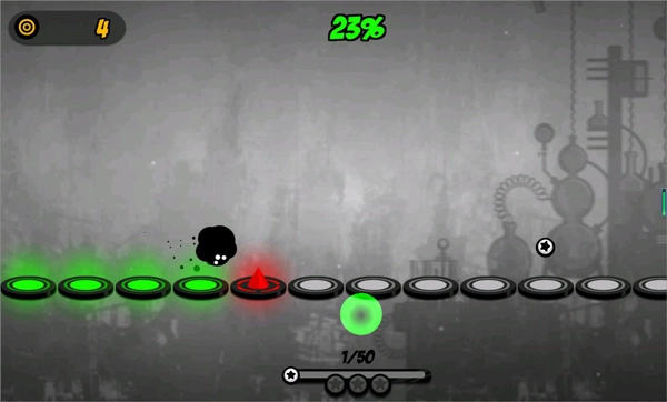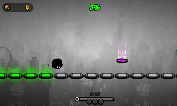 1、控制你的小黑球持续跳跃,避开各类障碍物,一直抵达终点。