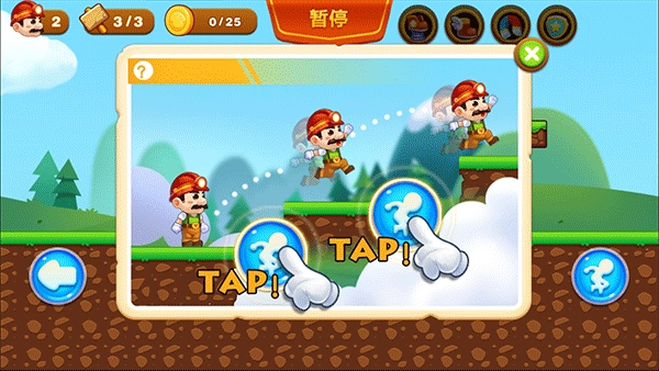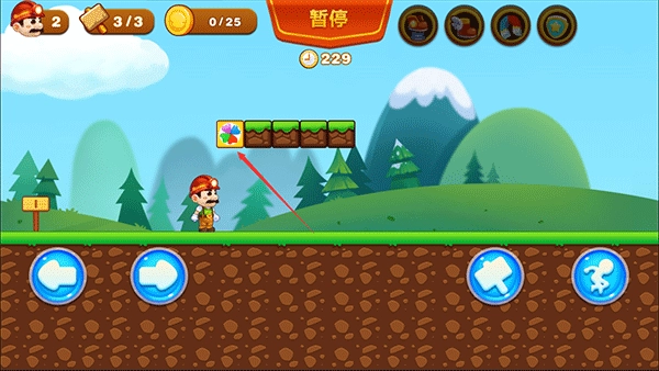 3、游戏内我们需要控制马里奥移动,同时需要跳跃躲避小怪,每局游戏有两条命,碰到小怪损失一条命,但是掉坑会直接死亡哦;