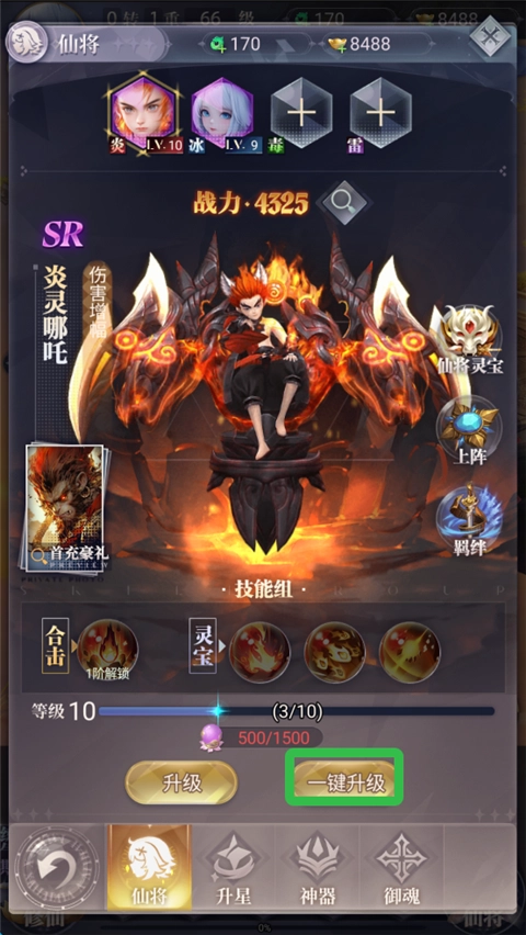 点击一键穿戴为角色穿戴装备,提升战斗力。
