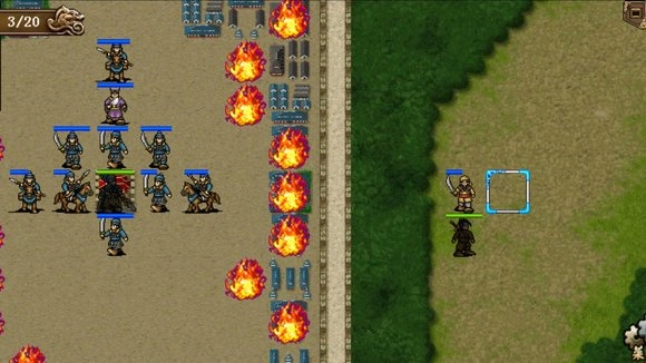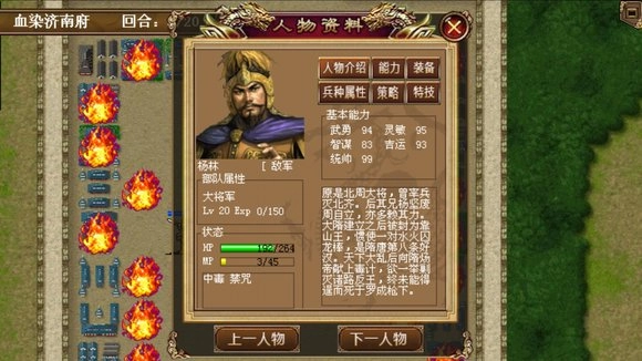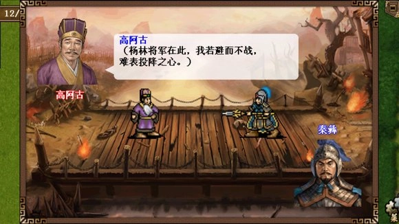 第三回合结束时,杨林部队发起主动攻击。要是想在这一关达成全灭敌人的目标,就得通过存档读档(s/l)的方式,让杨林陷入中毒或者混乱的状态。之后秦彝需要依靠自身的小补给法术,一边恢复生命值一边利用反击来积累伤害,同时还得确保秦彝每回合都能成功反击杨林,并且不会被杨林施加混乱效果,整个过程相当繁琐。