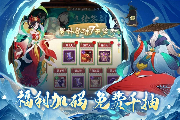 7活动期间参与7天签到,可累计领取神秘聚灵符530抽与限定聚灵符150抽。