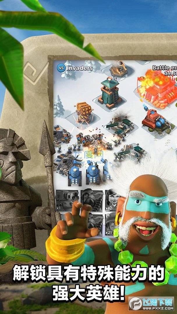 在你那片美丽的群岛国度的另一边,潜藏着一群邪恶的黑暗势力,他们不断侵扰着各个部落的安宁生活。现在需要你指挥我们的军队,去击溃这些来犯之敌。而敌方首领哈曼莫的各个指挥据点,正散布在地图的不同区域,只要成功将它们一一摧毁,就能收获大量珍贵的资源、水晶以及荣誉勋章作为奖励。