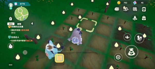 家园系统包含种植、任务、钓鱼等多种玩法机制。其中种植玩法操作简单,配备了便捷的吸菜一键收成功能;家园内的地形、家具与建筑材料种类丰富,家具支持自由调整摆放方向,玩家还能借助积木系统搭建出各式各样的创意造型。