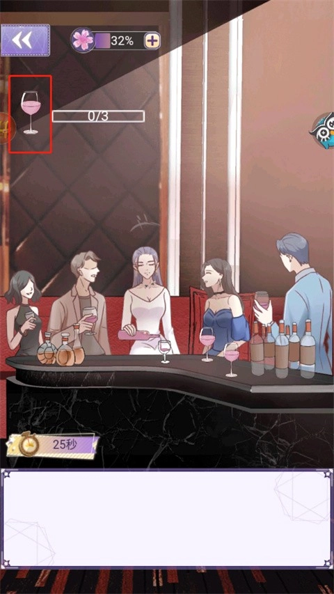 把桌上那两杯红酒喝掉,接着点击左上角的红酒图标喝下第三杯,之后就会跳转到另一个界面。