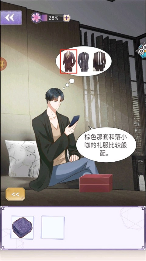 进入萧南的家中,拿取桌面上的首饰盒,挑选棕色的西服,然后回到电梯间。