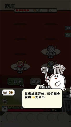 战斗开启前,玩家会得到10个大米币,这些货币可用于卡牌的购买。
