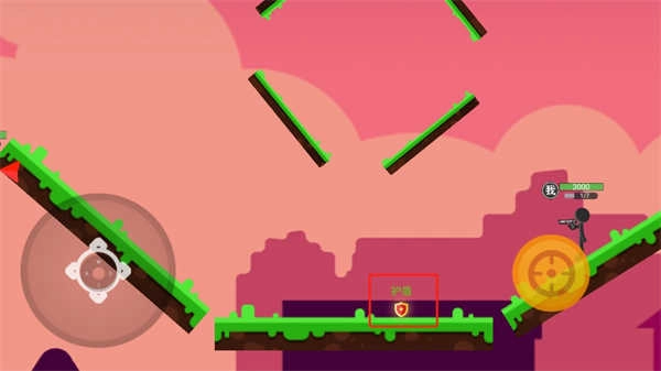 左下角的摇杆用于操控射击方向,射击时角色会反向移动,点击右下角的按钮就能发起攻击。