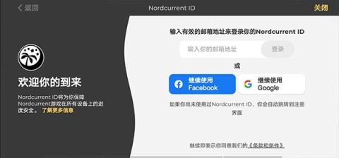 首次登录时会弹出绑定窗口,若未看到该窗口,可点击右下角的“选择”按钮进行ID登录,无需选择Facebook或Google账号。