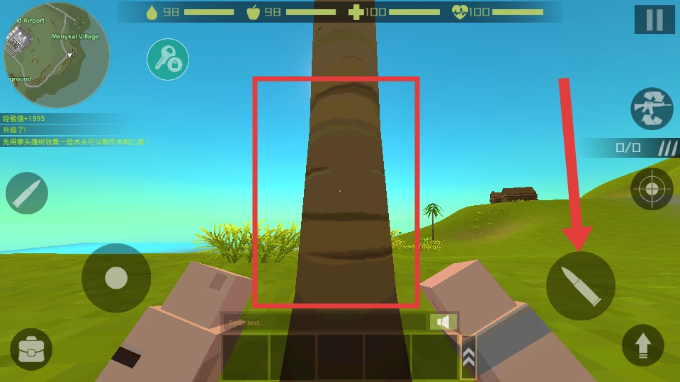 靠近树木这类资源,点击右侧的攻击图标,就能对树木展开砍伐来获取资源。