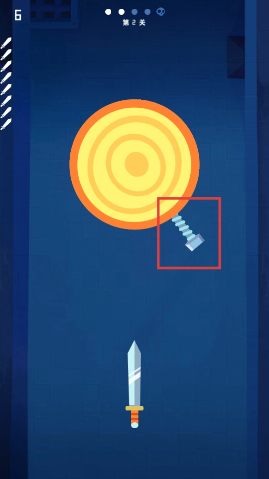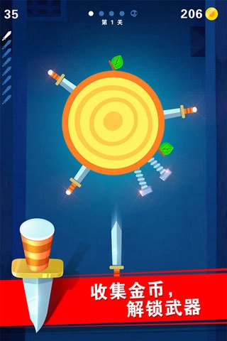 投掷飞刀时,要避开已经存在的飞刀,以此推进关卡进程,提高游戏等级。