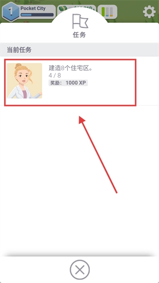 当前任务要求建造8个住宅区,还得接着规划建设住宅区,完成相应进度就能拿到【1000】-【XP】的奖励,帮助城市提升等级。