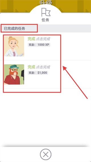 已完成的任务可点击领取奖励,获取【1000】-【XP】与【1000】元,积累资源用于后续城市建设。