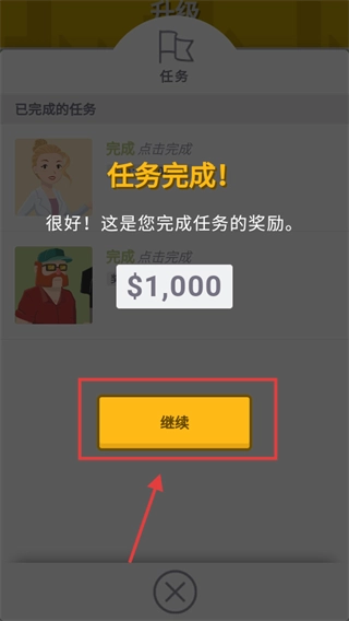 任务完成后可领取【1000】元奖励,点击【继续】按钮,即可返回游戏界面,继续推进城市建设与任务进程。