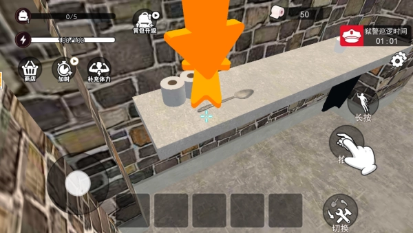 长按右侧的“长按”或“拾取”按钮,收集卫生纸、勺子之类的物品,这些物品能用于后续交易或完成任务,注意别错过任何可拾取的资源。