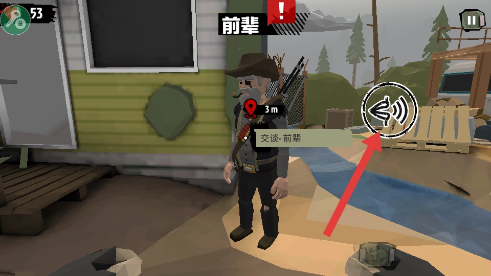 按照场景里【前辈-22m】的提示,到相应位置去找能互动的NPC“前辈”。