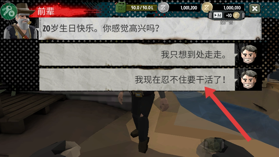 在对话选项里挑选【我现在忍不住要干活了!】,结束和“前辈”的交谈,推动剧情发展。