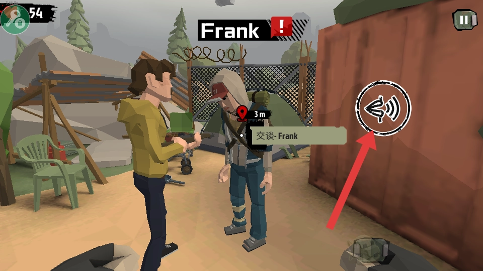 接下来找到NPC“Frank”,靠近他之后点击右侧的交互图标,进行【与Frank交谈】的操作,以此继续解锁新的任务或剧情。
