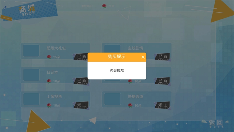 因为这款游戏已经实现无限鲜花功能,所以我们能够直接进入鲜花商城去购买超级大礼包、主线剧情、日记本之类的物品。