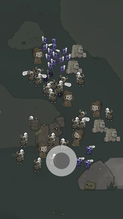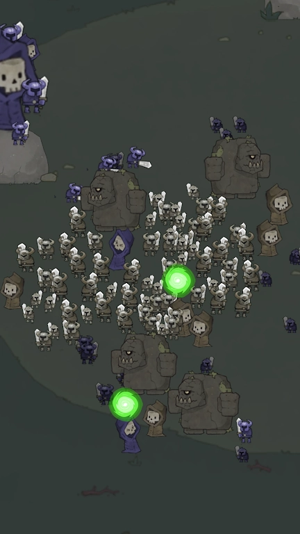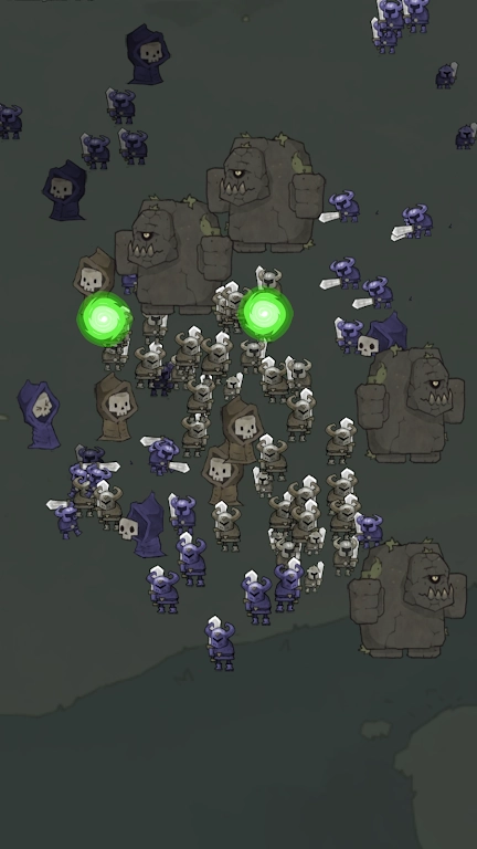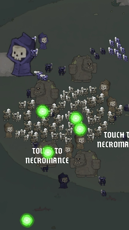 玩家通过点击屏幕召唤亡灵军团,在击败敌人后点击其尸体进行复活,将这些敌人转化为己方单位,以此逐步扩大军团的规模。