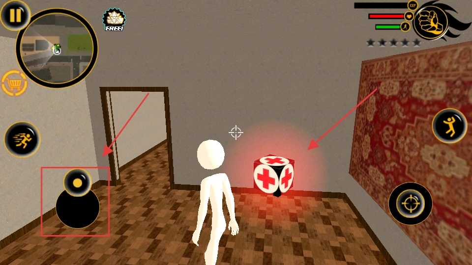 使用左侧摇杆控制角色移动,靠近标有【红十字】标识的医疗包可恢复生命值,战斗前建议优先补充物资以增强生存能力。