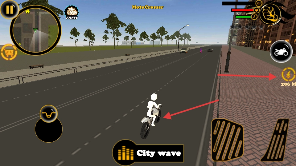 骑【摩托车】时点击右侧的加速按钮来提升速度,按照小地图的指引前往任务地点,行驶过程中要注意避让其他车辆。