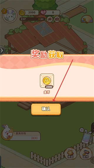 完成修缮任务后,点击确认按钮领取金币奖励。