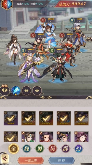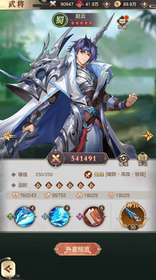通过给武将升级、穿戴装备,能够提升武将的战斗、血量和防御属性。