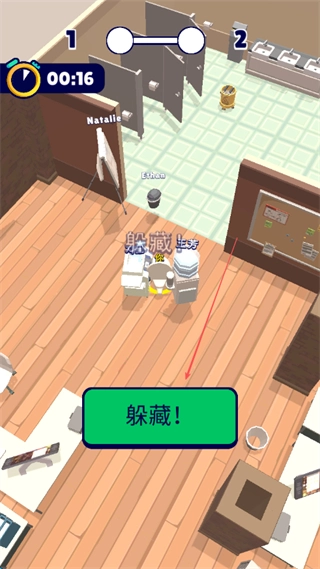 在场景里找出能藏身的地方,点击“躲藏!”按钮,就能让角色藏起来,避开追捕者。