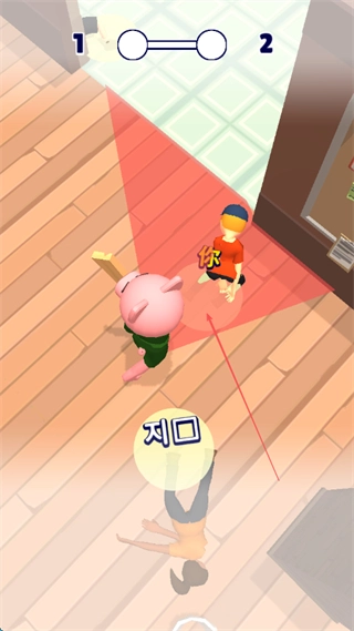 追捕者要进入视野范围的红色区域,去发现并捕捉躲藏起来的玩家,比如穿橙色衣服的角色。