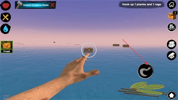 长按右侧钩爪完成蓄力操作,借助钩爪来抓取远处漂流着的物资。