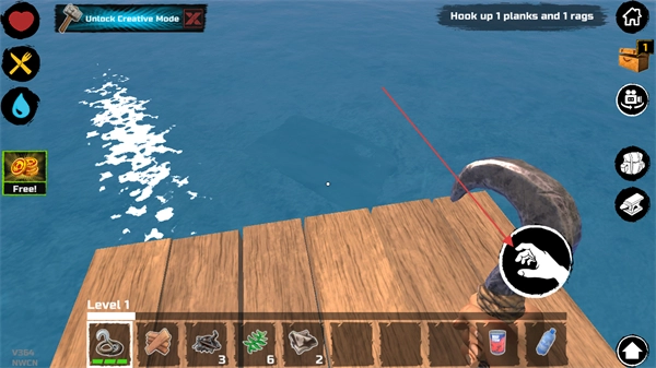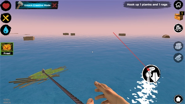 在海上收集漂浮的木材、塑料、绳索等各类基础资源,部分稀缺资源需通过打捞漂浮物获取,各类资源都有用途,为后续建造设施、升级提供基础保障。