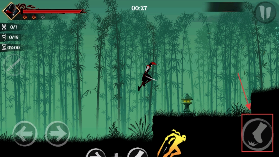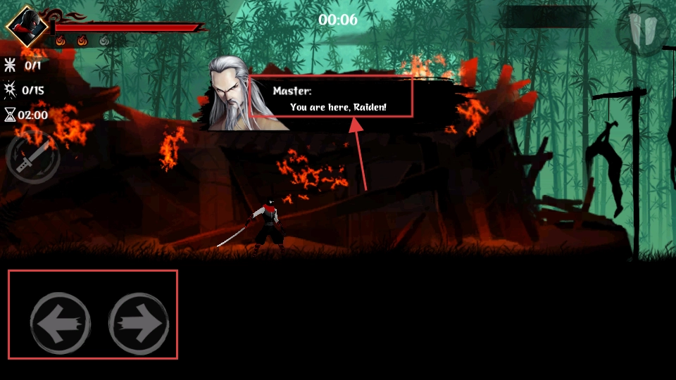游戏开局时跟随大师的指引,借助左右移动键探索场景,开启忍者的战斗冒险之旅。