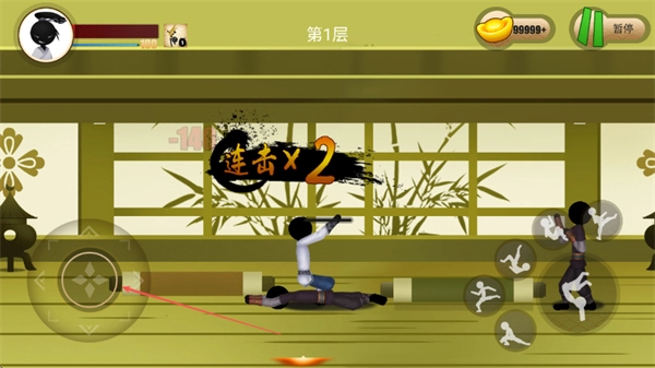 利用左侧摇杆进行灵活走位,不断向敌人发起攻击,以此触发×2连击效果,从而稳固战斗中的优势地位。