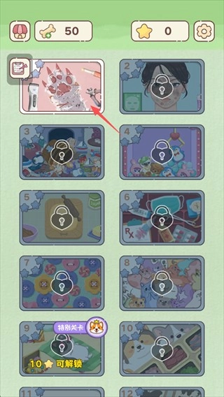 第一关是帮助猫咪修复猫爪