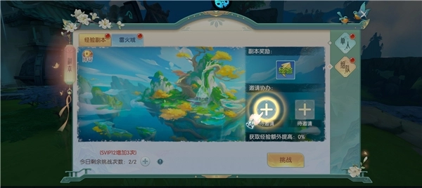 4、每天都可以挑战两次副本,其中有经验副本、雷火城等,到了零点就会刷新次数