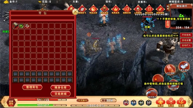 千幻大陆是一款经典复古的传奇打金游戏。它以宏大的东方玄幻世界为背景,玩家能体验热血PK和打宝爆装的乐趣。游戏拥有丰富的剧情设定与自由战斗系统,支持挂机刷怪、轻松升级,很适合喜欢热血PK与打宝爆装的玩家。此外,游戏内设有横竖屏切换功能,可适配各种游玩习惯,战斗技能流畅又酷炫,装备全靠玩家自己打,还支持元宝回收与自由交易。