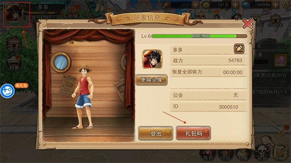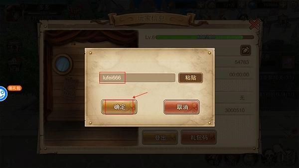 2、输入礼包码lufei666,领取1000次免费抽奖。